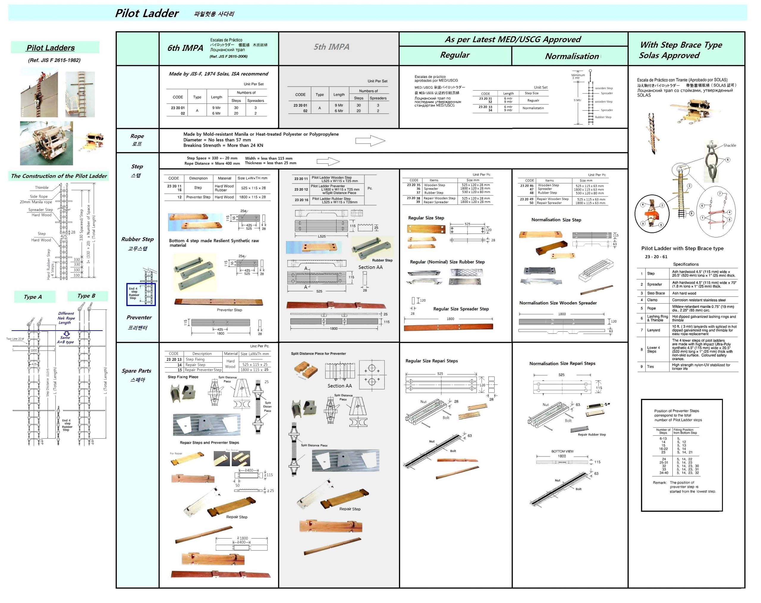 SOLAS APPROVED PILOT LADDER WITH STEP BRACE TYPE – SET