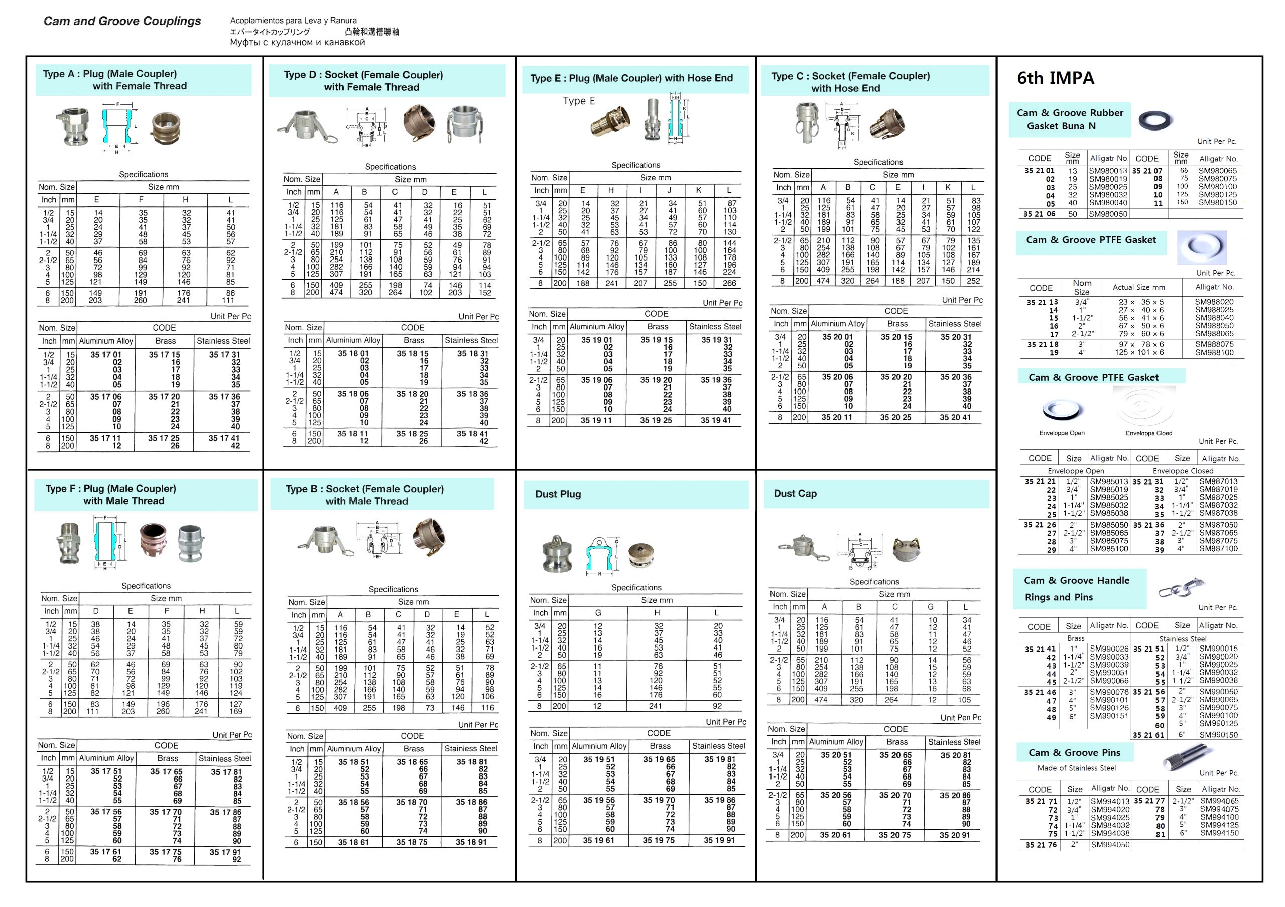 CAM & GROOVE COUPLING, A TY PLUG (MALE COUPLER) WITH FEMALE THREAD, BRASS, 1/2′ – PC