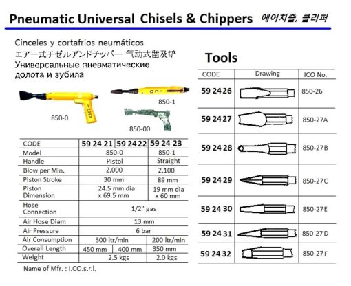 CHISEL FOR PNEUMATIC UNIVERSAL CHISELS & CHIPPER, 850-27A, ICO – PC