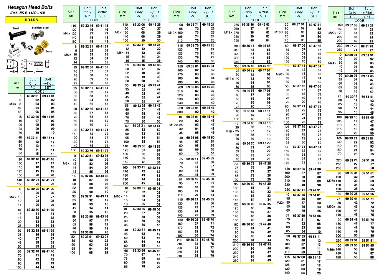 HEX. HEAD BOLT WITH NUT, BRASS. M24 x 170 MM – SET