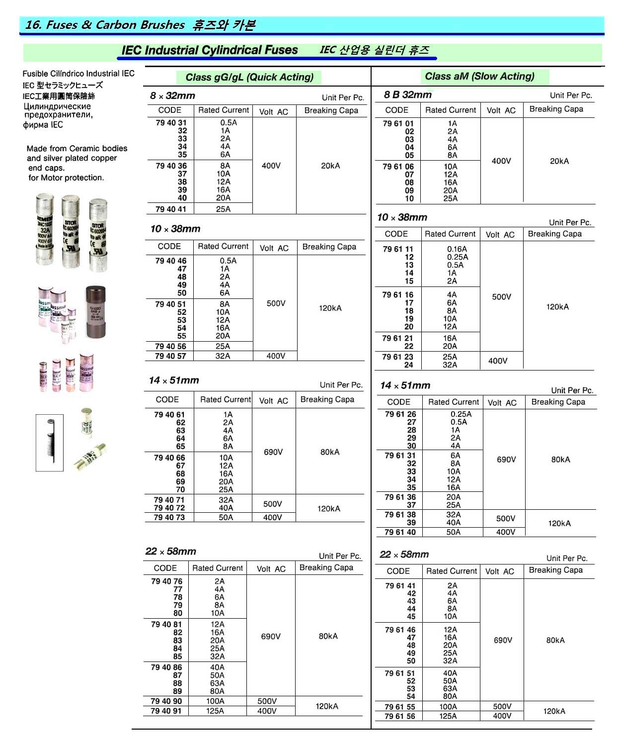 IEC INDUSTRIAL CYLINDERICAL FUSE, CLASS Gg/gL, QUICL ACTING, 14×51 MM, 500V, 40 A – PC