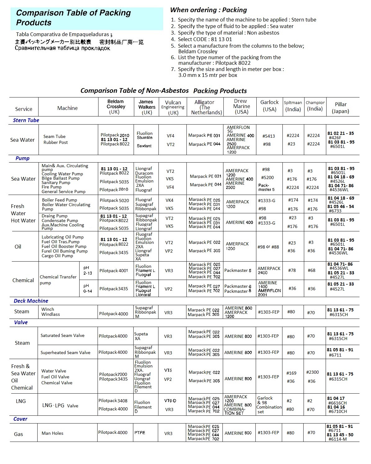 Comparison Table of Non-Asbestos Packing Products – LOT