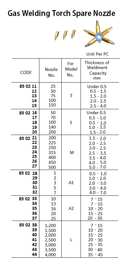 SPARE NOZZLE FOR NO.A1 GAS WELDING TORCH, NO.5 ( 6KIND/SET ) – SET