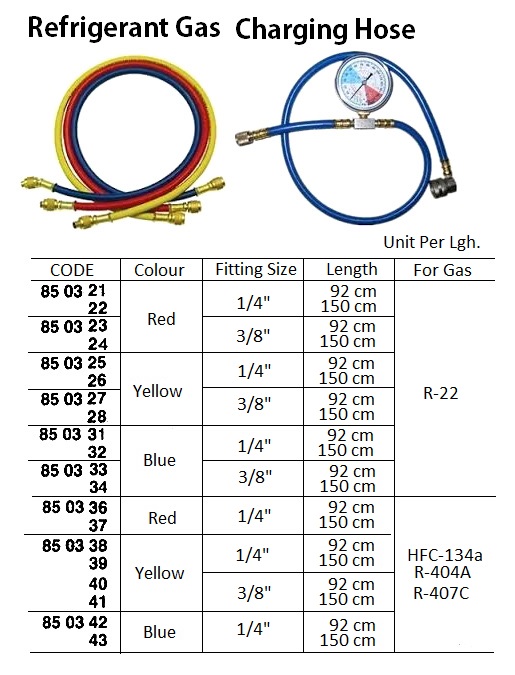 REFRIGERANT GAS CHARGING HOSE, RED, 1/4″, 150 CM, FOR R22 – LGH